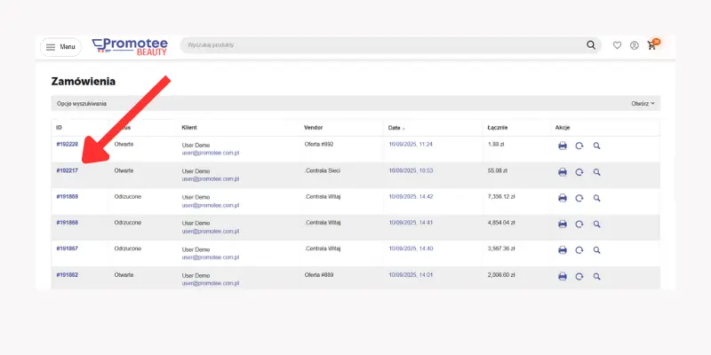 Na liście znajdź zamówienie, które chcesz złożyć ponownie, i kliknij, aby przejść do jego szczegółów.