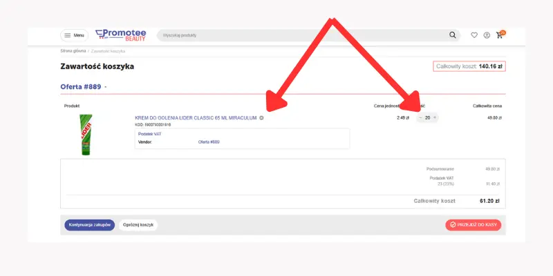 Produkty pojawią się w Twoim koszyku. Możesz je wysłać od razu albo zmodyfikować (zmienić ilości, dodać lub usunąć produkty).