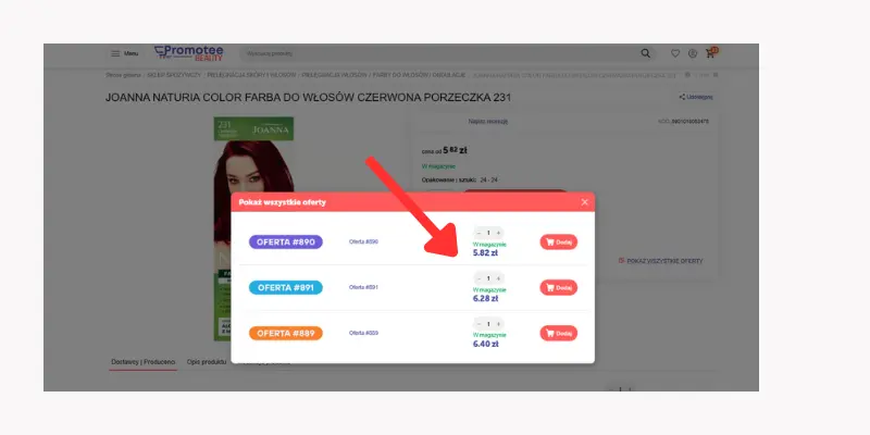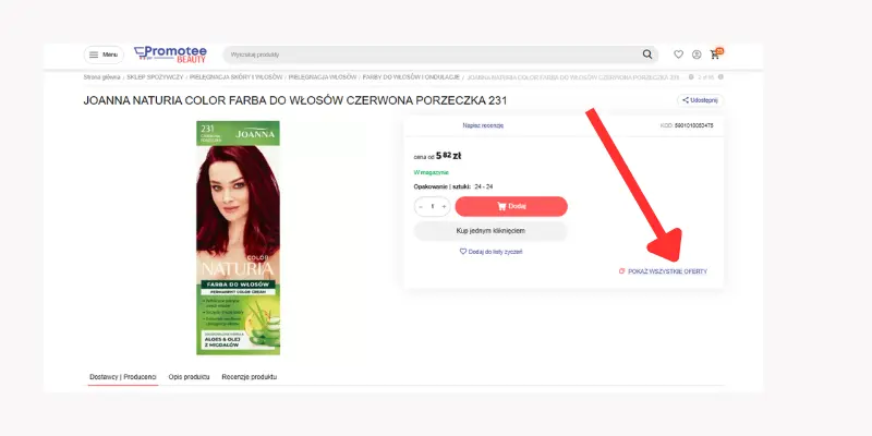Kliknięcie w link otworzy pełną listę dostawców, którzy mają ten produkt w swojej ofercie. Zobaczysz szczegóły takie jak: cena, dostępność.