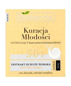 Dane produktowe Bielenda Kuracja Młodości 50+ Liftingujący krem przeciwzmarszczkowy na dzień noc 50 ml Liftingujący krem przeciwzmarszczkowy na dzień i na noc zalecany dla wieku: 50+ Krem widocznie poprawia wygląd i kondycję cery, pozwala jej zachować ładny wygląd i harmonijne proporcje....