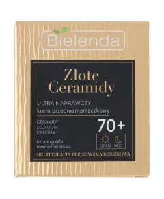 Dane produktowe Bielenda Złote Ceramidy 70+ Ultra naprawczy krem przeciwzmarszczkowy 50 ml Ultra naprawczy krem przeciwzmarszczkowy na dzień i na noc zalecany dla wieku: 70+ Krem widocznie poprawia jakość i kondycję cery dojrzałej. Wzmacnia, wspomaga naprawę suchej, wiotczejącej skóry z...