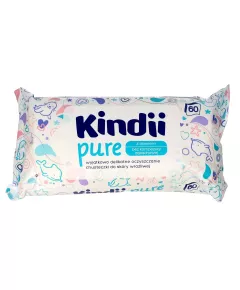 Kindii Pure Chusteczki do skóry wrażliwej 60 sztuk Chusteczki dla niemowląt i dzieci do skutecznej pielęgnacji i oczyszczania skóry wrażliwej. Cechy z aloesem, bez kompozycji zapachowej, wyjątkowo delikatne oczyszczanie, od pierwszych dni niemowląt, nowa miękka chusteczka, delikatna receptura...