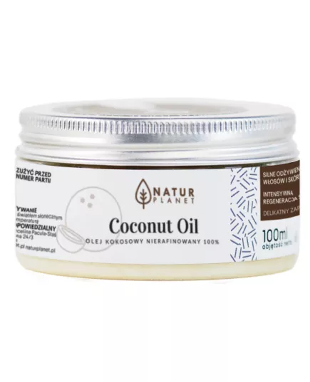 Olej Kokosowy pozyskiwany jest w procesie tłoczenia na zimno twardego miąższu orzechów palmy kokosowej (Cocos nucifera). Jest bogatym źródłem witamin i minerałów. Charakteryzuje się wysoką zawartością kwasów tłuszczowych, w tym kwasu laurynowego, witamin z grupy B, witaminy C i E, kwasu foliowego oraz mikro- i makroelementów. Produkt w 100% naturalny i bezpieczny. Polecany do każdego rodzaju skóry.