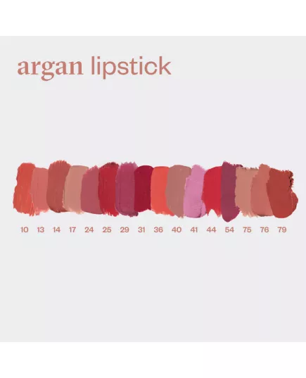 Dlaczego Argan Lipstick stały się Waszymi ulubionymi szminkami? Bo zawierają aż 70% składników pielęgnujących! Ich kremowe formuły dbają o usta przez cały dzień, a kolor pozostaje tak samo zachwycający, jak w momencie nałożenia. Zawarte w pomadce witaminy E i C, olej arganowy, olej Candelilla i olej Carnauba zapewniają uczucie nawilżenia i wygładzenia, a Ty możesz być spokojna – Twój piękny uśmiech zawsze będzie miał perfekcyjną oprawę!