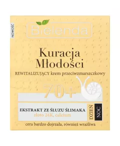 Dane produktowe Bielenda Kuracja Młodości 70+ Rewitalizujący krem przeciwzmarszczkowy na dzień noc 50 ml Rewitalizujący krem przeciwzmarszczkowy na dzień i na noc zalecany dla wieku: 70+ Krem widocznie poprawia wygląd i kondycję cery bardzo dojrzałej, pozwala jej zachować ładny wygląd i...