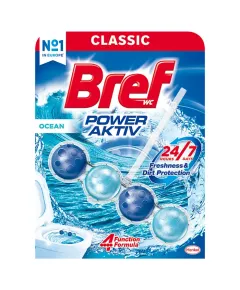 Dane produktowe Bref WC Power Aktiv Zawieszka myjąco-zapachowa do muszli WC ocean 50 g Nowy Power Aktiv z +50 % efektem przeciwdziałającym osadzaniu się kamienia** nie tylko zapewnia długotrwały zapach, ale także wzmocnioną formułę przeciw osadzaniu się kamienia, zapewniając czystszą i...