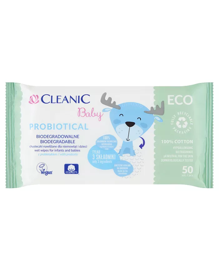 CLEANIC BABY PROBIOTICAL CHUSTECZKI NAWILŻANE DLA NIEMOWLĄT I DZIECI 50 SZTUK