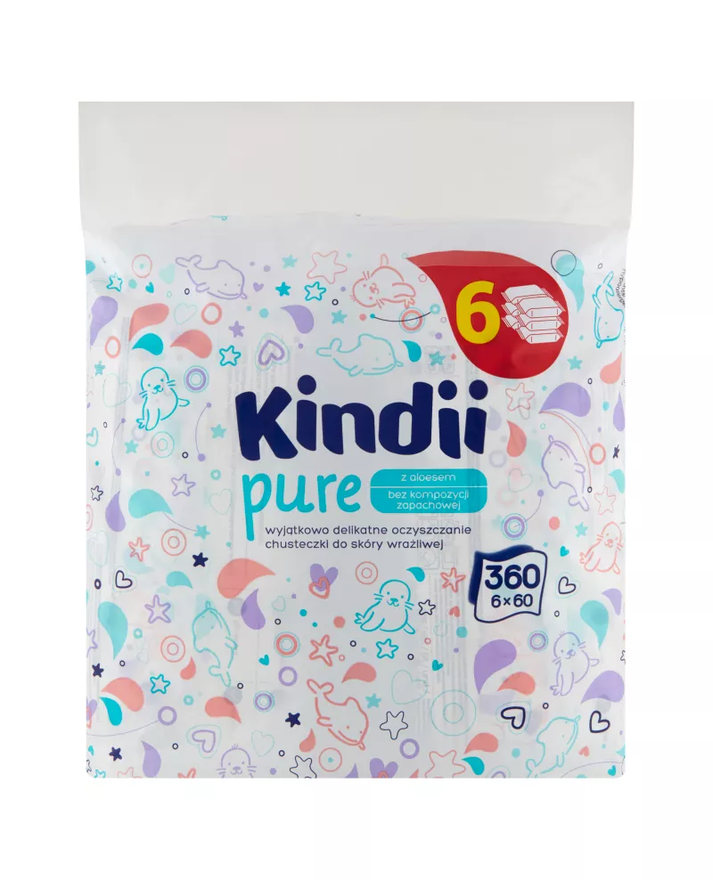 Kindii Pure Chusteczki do skóry wrażliwej 360 sztuk (6 x 60 sztuk)