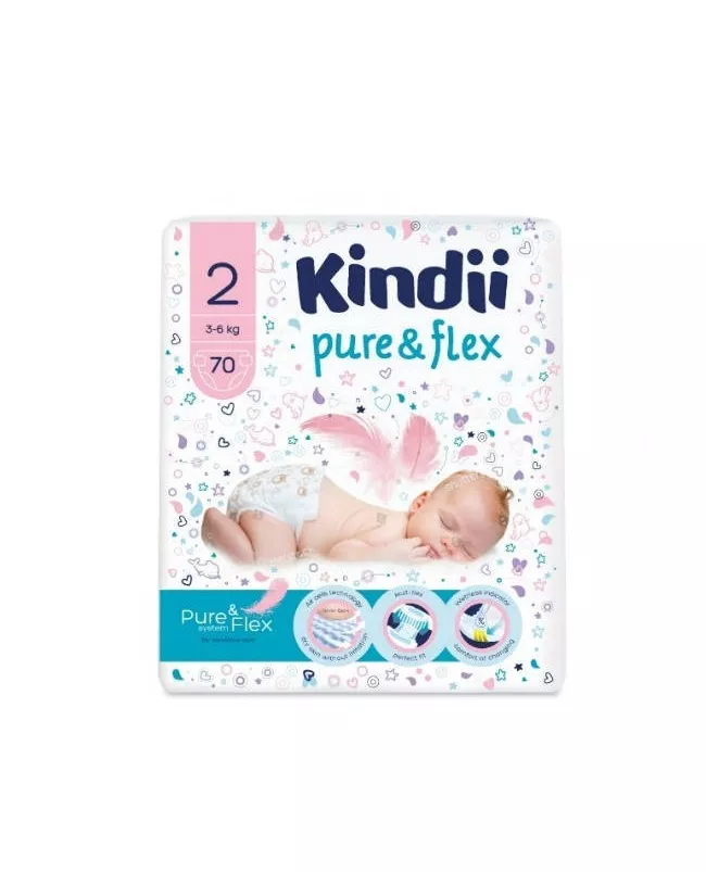 KINDII PURE & FLEX PIELUSZKI 2 MINI 3-6 KG 70 SZTUK