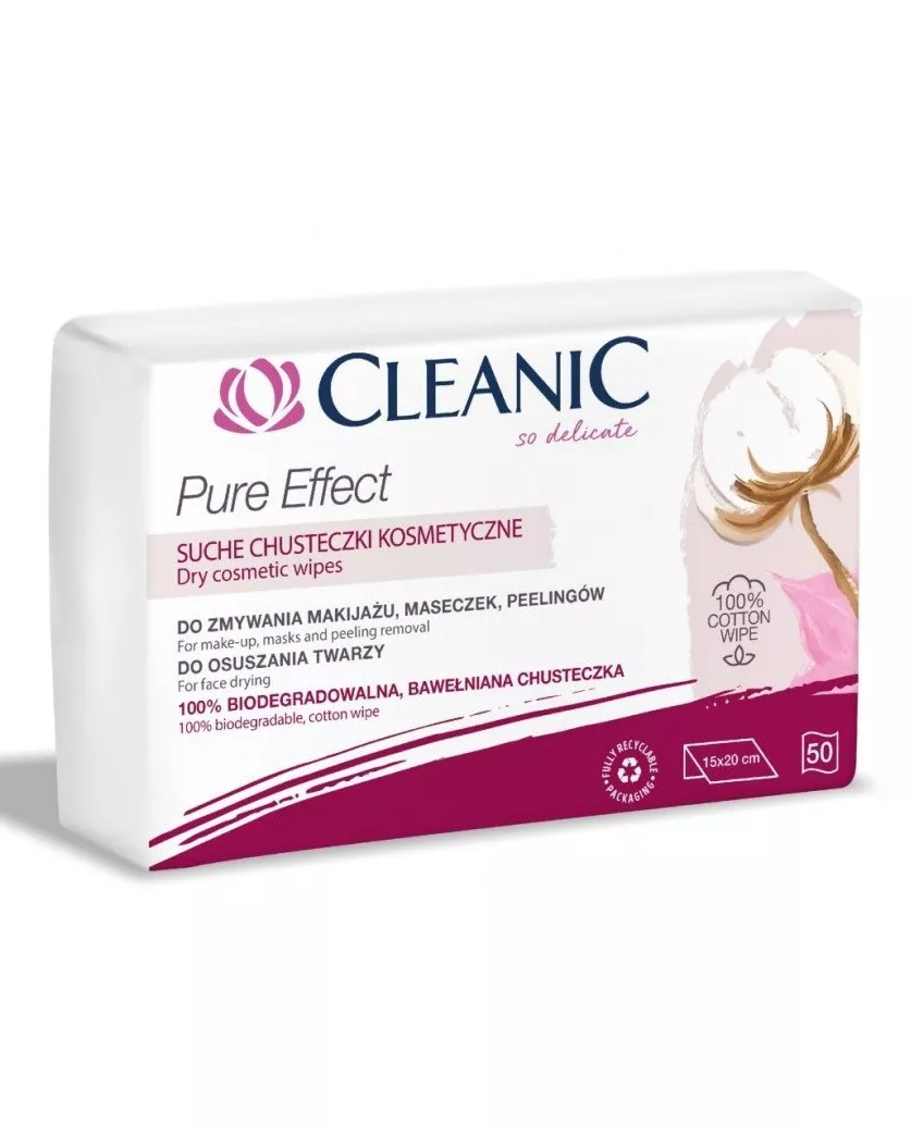 CLEANIC PURE EFFECT SUCHE CHUSTECZKI KOSMETYCZNE 15 CM X 20 CM 50 SZTUK